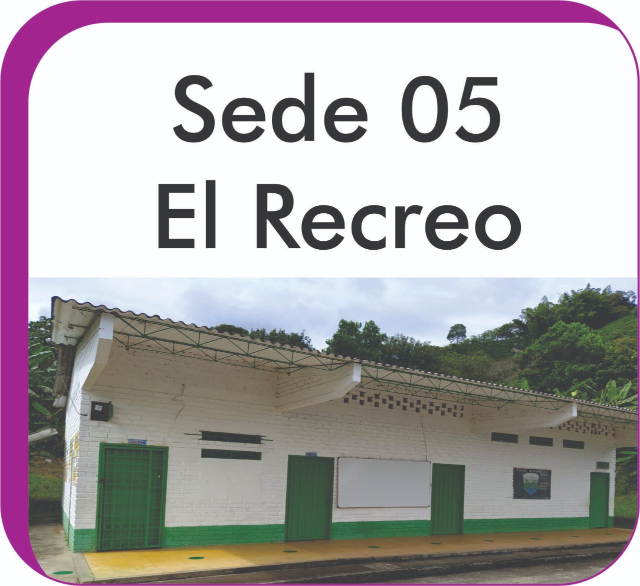 6 sedes conforman nuestra institución, edificaciones estilo campestre dotadas con muebles y equipos que hacen confortable la estadía del estudiante y competente su aprendizaje, se cuenta con conectividad permanente de excelente calidad, 2 lotes de terreno para la práctica y ejecución de emprendimientos ambientales y productivos.
